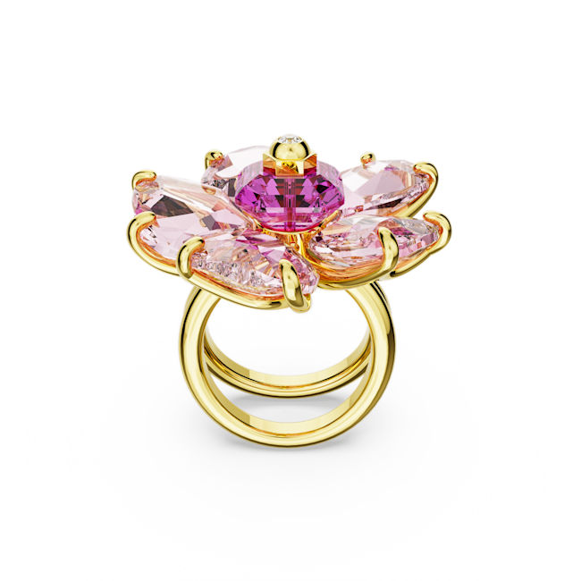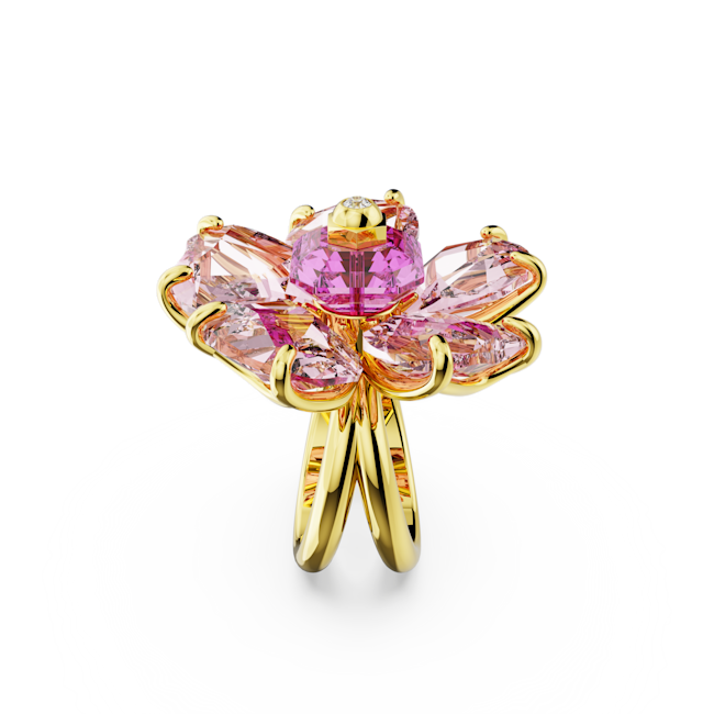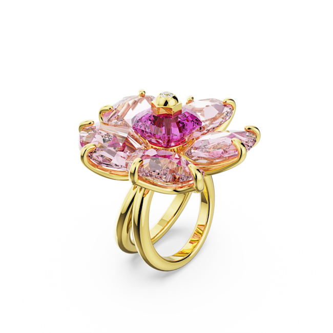 Idyllia Kokteyl Yüzüğü, Çiçek, Pembe, Altın rengi kaplama