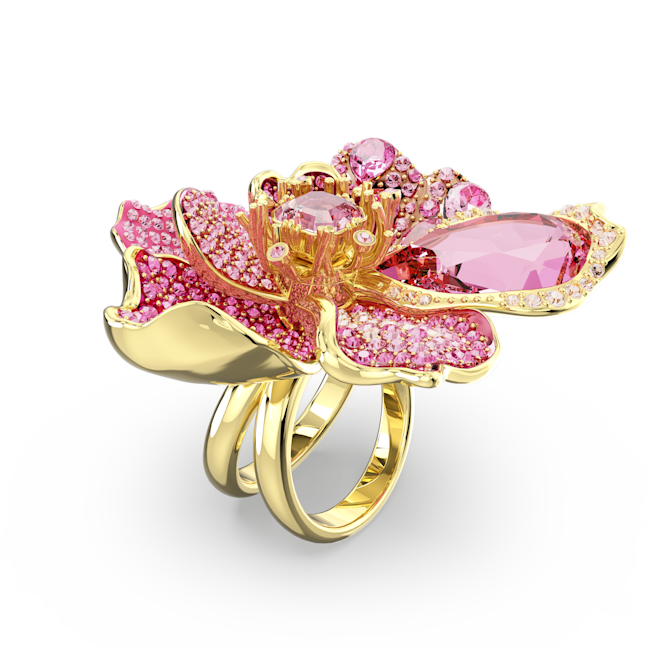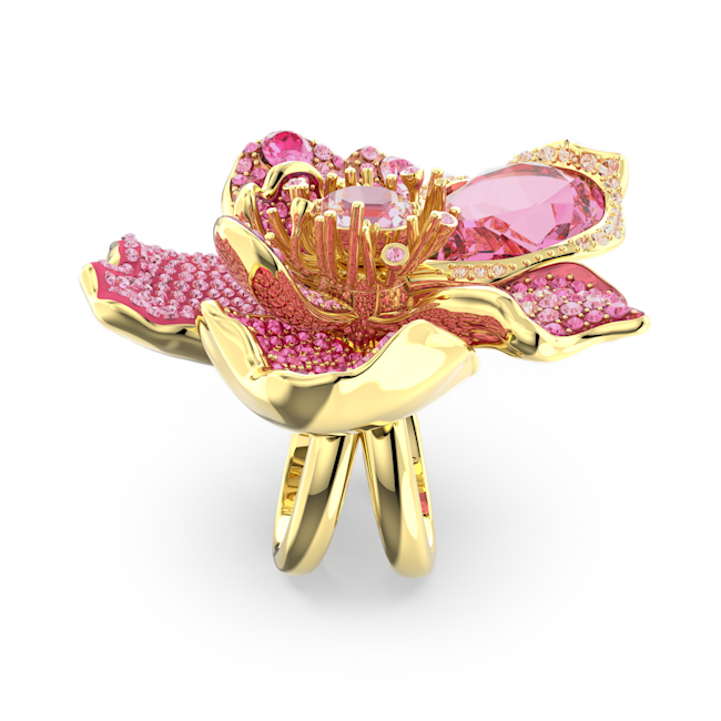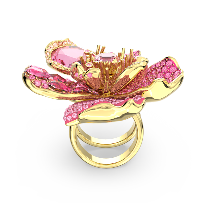 Idyllia Kokteyl Yüzüğü, Pavé, Çiçek, Pembe, Altın rengi kaplama