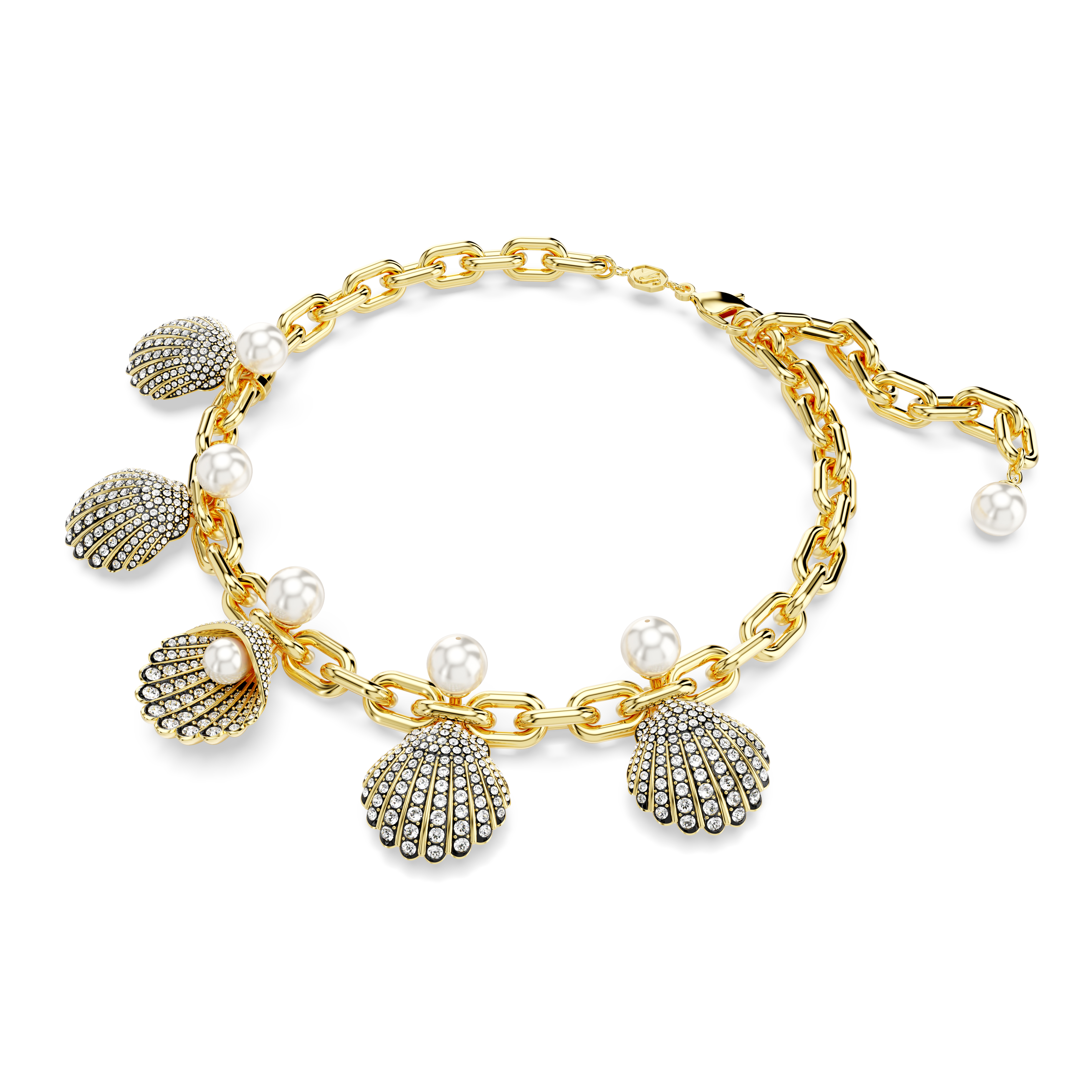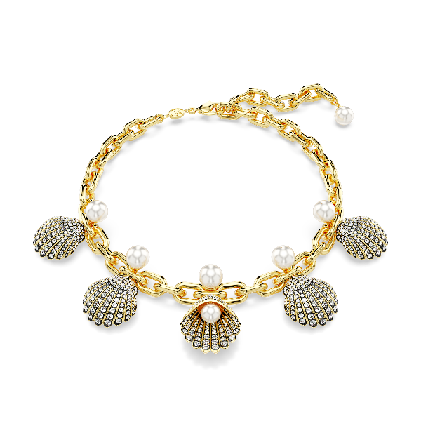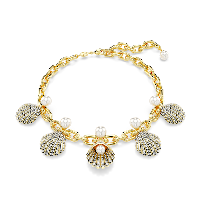 Idyllia Kolye, Kristal inciler, Deniz Kabuğu, Beyaz, Altın rengi kaplama