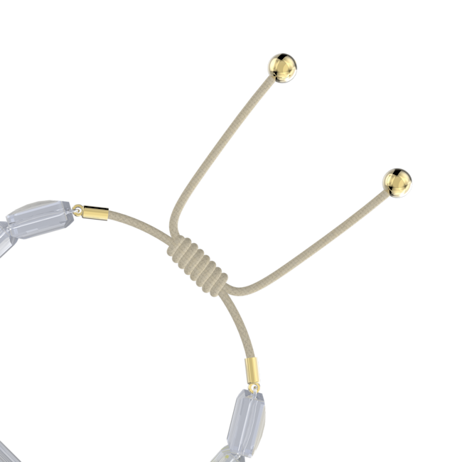 Bu kristal bilezik, geleneksel boncuk işçiliğine ve sembolik referanslara yeni bir yorum getiriyor. Beyaz kare kesim kristallerle üretilen ve ayarlanabilir parafinli pamuk kordonla tamamlanan bu parça, yeni başlangıçları ve hayallerin gerçeğe dönüşmesini temsil etmesi için ay motifine yer veriyor. Bu özel, günlük kullanıma uygun bilezikle mücevher koleksiyonunuza neşe ve olumluluk katın. Kreatif Direktör Giovanna Engelbert tarafından Collection II için tasarlanmış olan bu bileklik, Letra ailesinin bir üyesi.