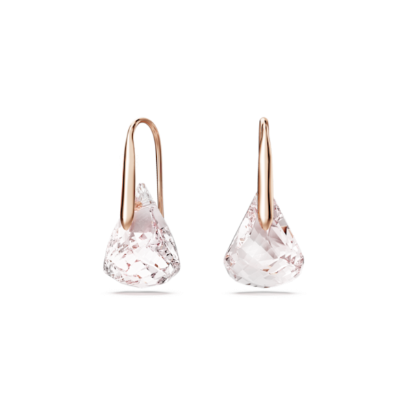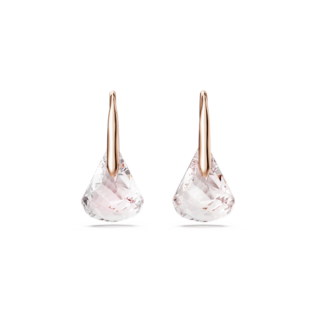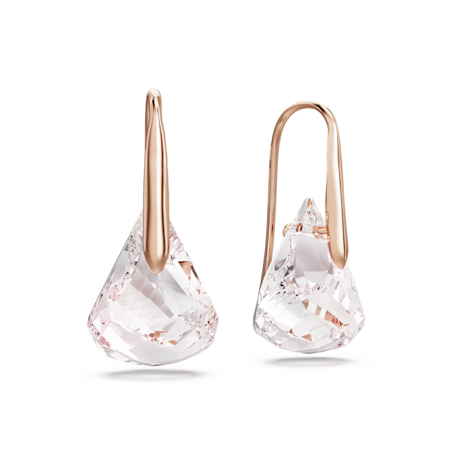 Doğadan esinlenen bu iğneli küpelerin benzersiz şekli su damlalarını hatırlatıyor. Pembe altın kaplama küpelerin her birinden özel Toupie kesimli iri, ışıltılı bir Crystal Blush sarkıyor. Taze, kadınsı bir görünüm için bu zarif parçayı uyumlu kolye ile birlikte kullanın.