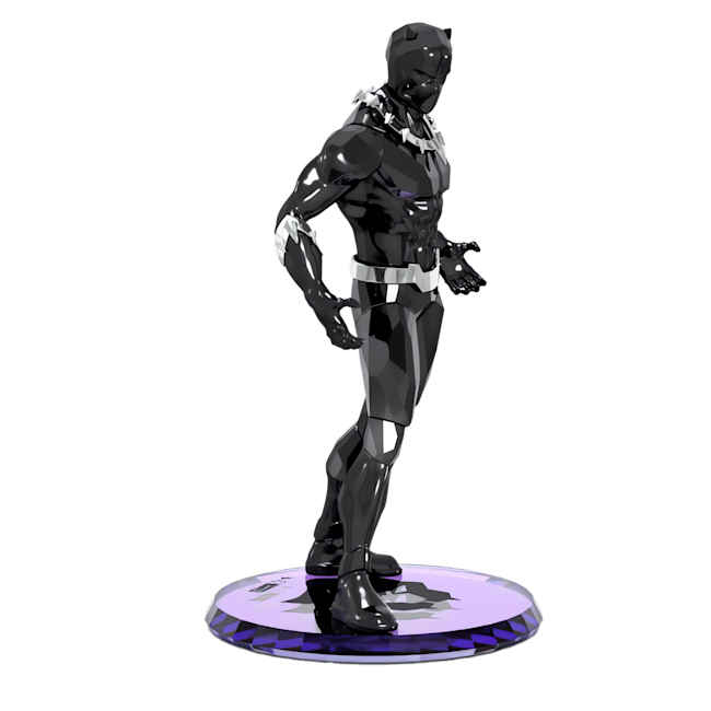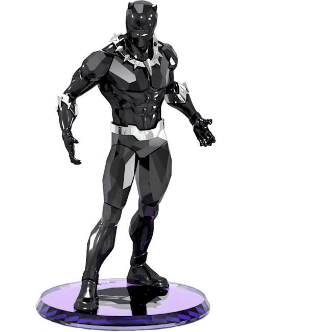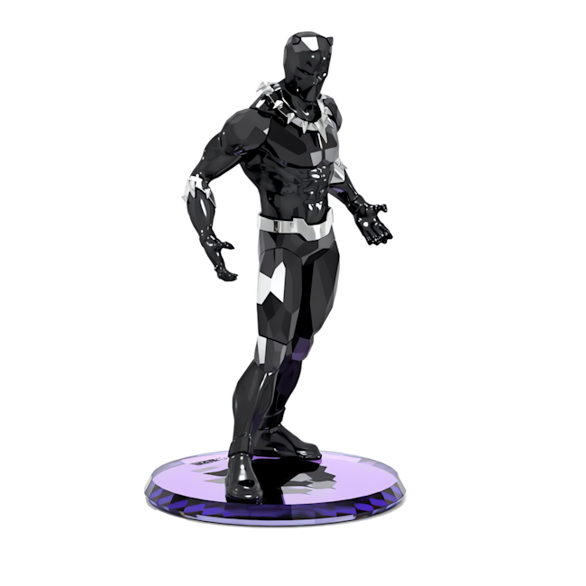 Uzun, güçlü ve etkileyici görünen bu şık heykelcik Wakanda Kralı’nın ışıltılı bir tasvirine yer veriyor. Swarovski’nin detaylara gösterdiği özen ve kesim konusundaki uzmanlığı, 649 adet façeta ve imza niteliğindeki siyah tonlarla üretilen parçanın her bir özgün detayında gözler önüne serildi. Efsanevi Vibranium takımıyla bir kaidenin üzerinde duran karakter, süper kahraman tarzına özgün bir dokunuş katılması için cilalı metal pençe bir kolyeyle tasarlandı. Tüm Marvel severler için vazgeçilmez bir parça olan bu tasarım, bir yüzük ve bir kolye içeren diğer Black Panther mücevherlerimizle göz alıcı bir ahenk yakalıyor. Dekorasyon objesidir. Oyuncak değildir. 15 yaş altındaki çocuklar için uygun değildir.