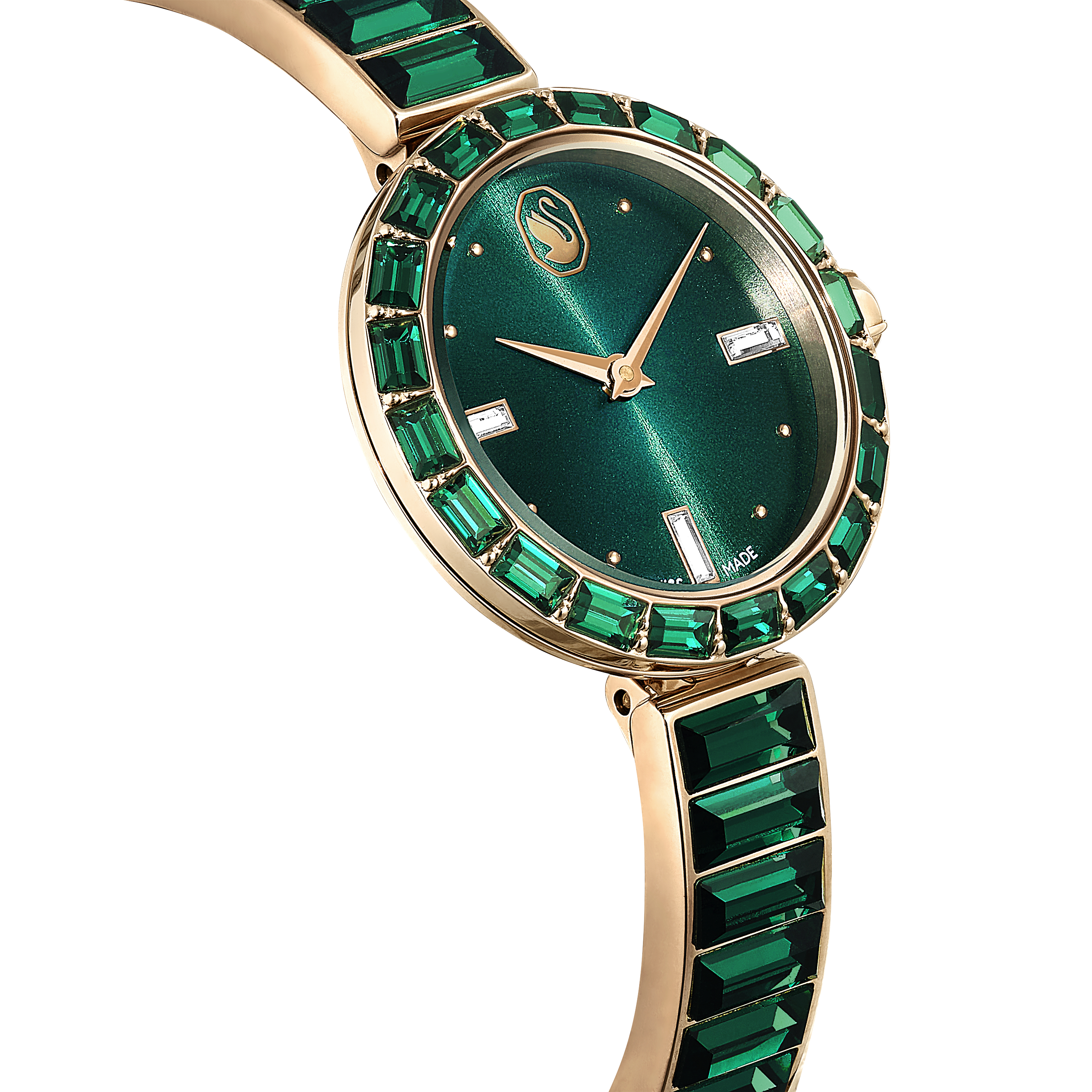 Matrix Bangle Saat, İsviçre Üretimi, Kristal bileklik, Yeşil, Şampanya altın rengi yüzey