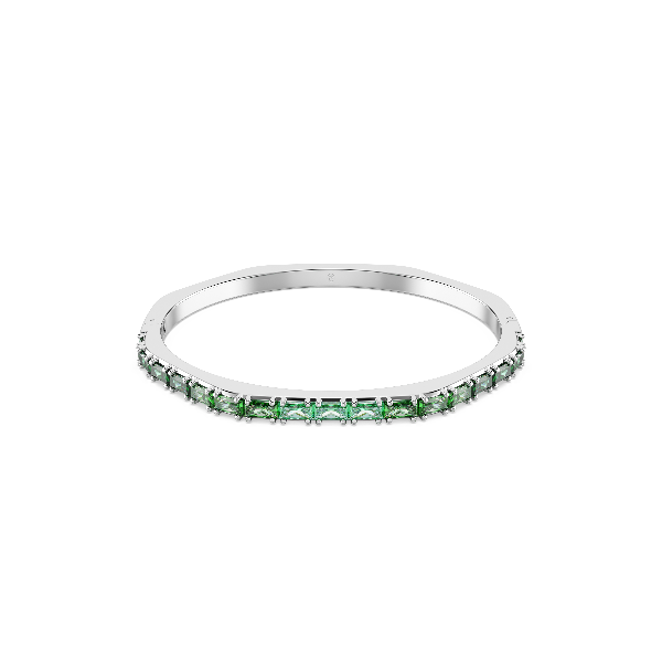 Bu menteşeli Matrix halka bileklik ile günlük görünümünüze ışıltı katın. Rodyum kaplama tasarım, Swarovski’nin efsanevi sekizgen şeklinde üretildi ve yatay bir şekilde yerleştirilmiş yeşil baget kesim Swarovski Zirkonyanın geçişiyle oyuncu bir dokunuşla süslendi. Uyumlu Matrix halka bilekliklerle birlikte kullanmak için ideal olan bu tasarım, en canlı halinizi ortaya koyabilmeniz için Swarovski’nin imzası niteliğindeki renklerle süslenmiştir.