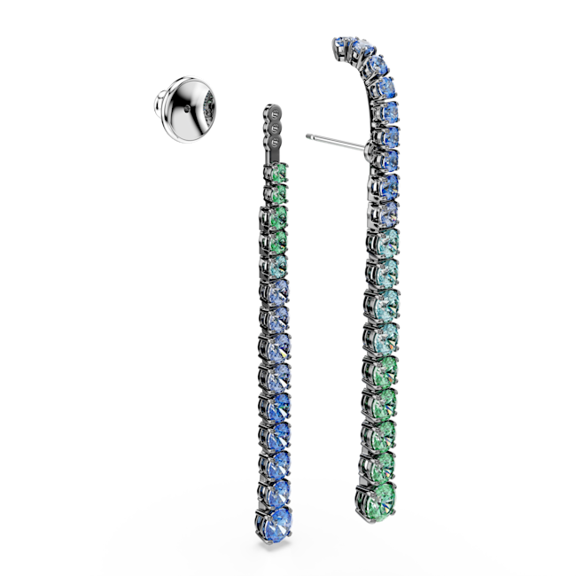 Swarovski’nin bu canlı küpeleriyle yoğunluğu artırın. Rutenyum kaplamalı her bir parça, turkuazdan maviye geçiş yapan çarpıcı bir kristal renk geçişi gösteren iki kristal strandına sahiptir. Kendi göz alıcı setinizi oluşturmak için uyumlu Matrix Tennis kolye ile birlikte kullanabilirsiniz.