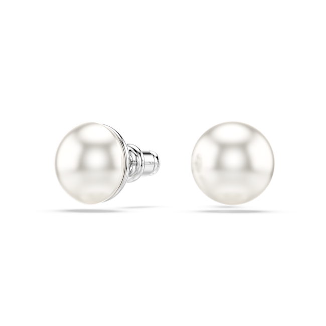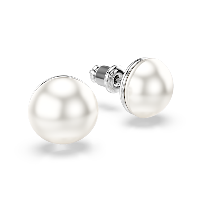 Matrix düğme Küpeler, Kristal inci, Beyaz, Rodyum kaplama