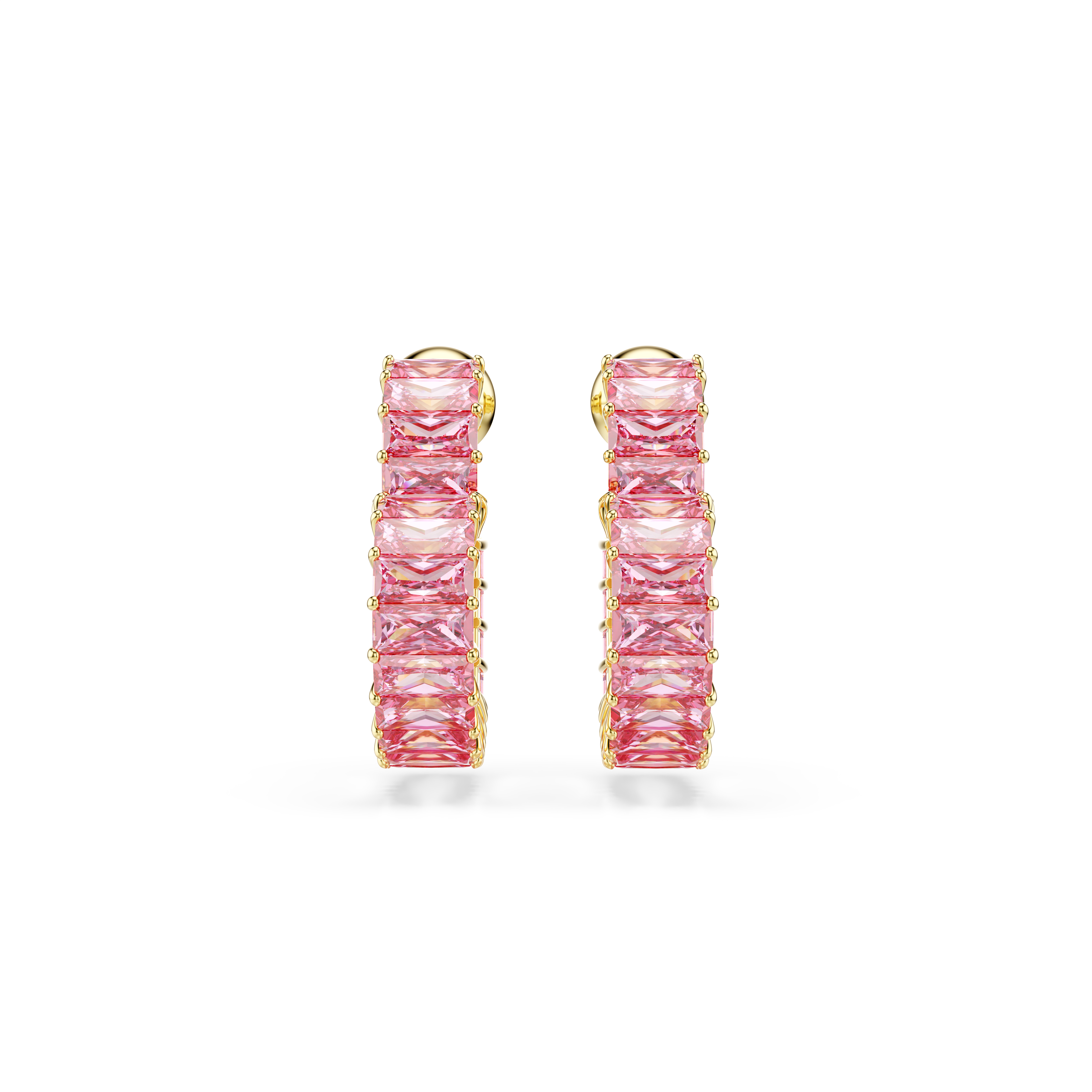 Matrix halka küpeler, Baget kesim, Kalp, Küçük, Pembe, Altın rengi kaplama