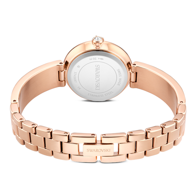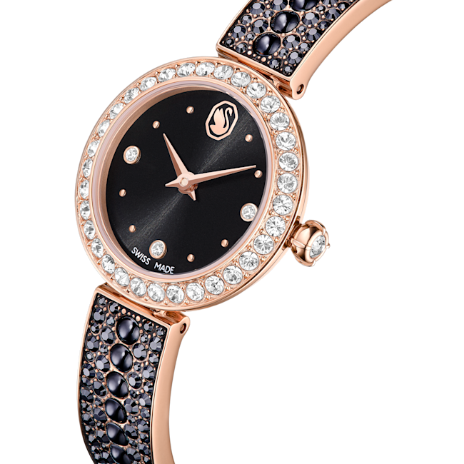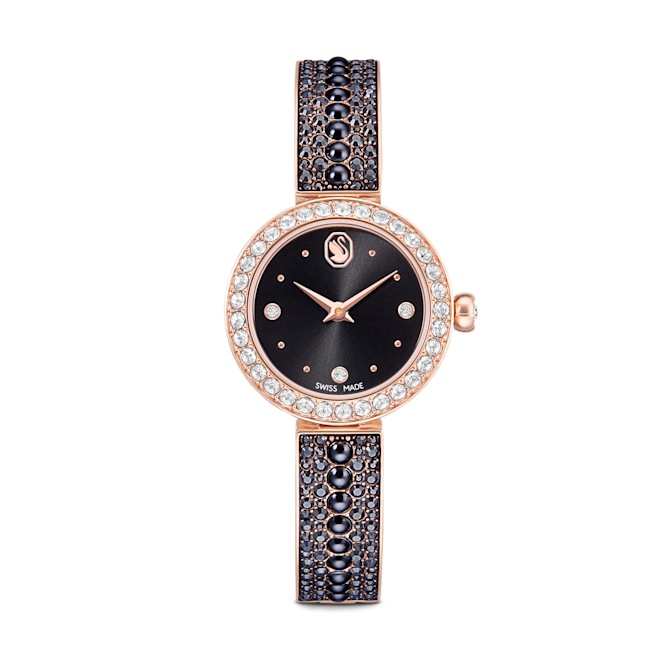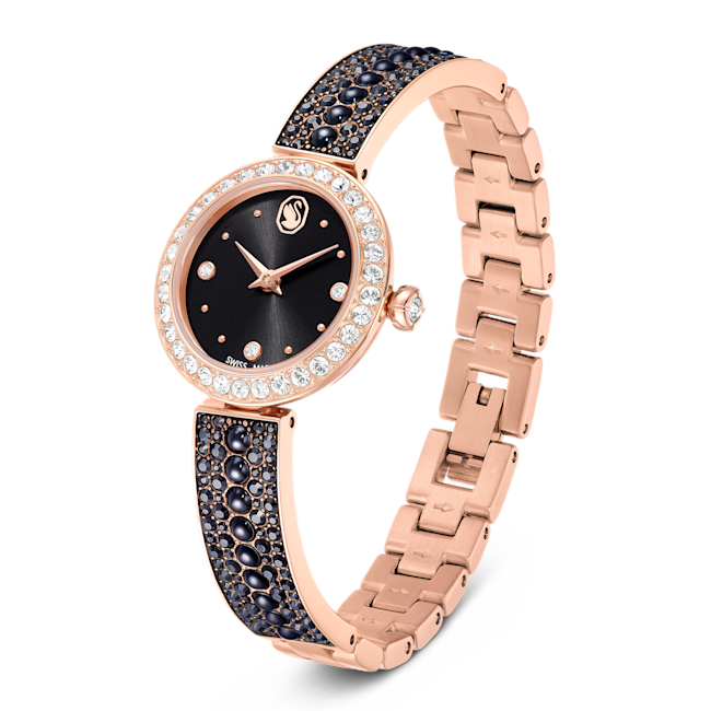 Matrix pearl bangle Saat, İsviçre Üretimi, Kristal bileklik, Siyah, Pembe altın rengi yüzey