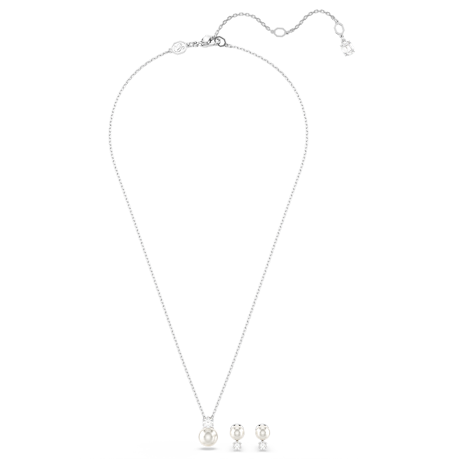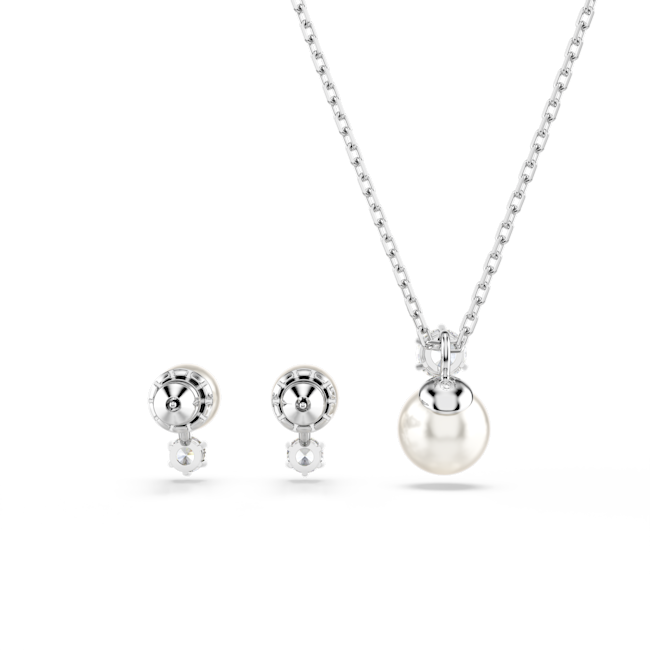 Matrix Set, Kristal inci, Yuvarlak kesim, Beyaz, Rodyum kaplama