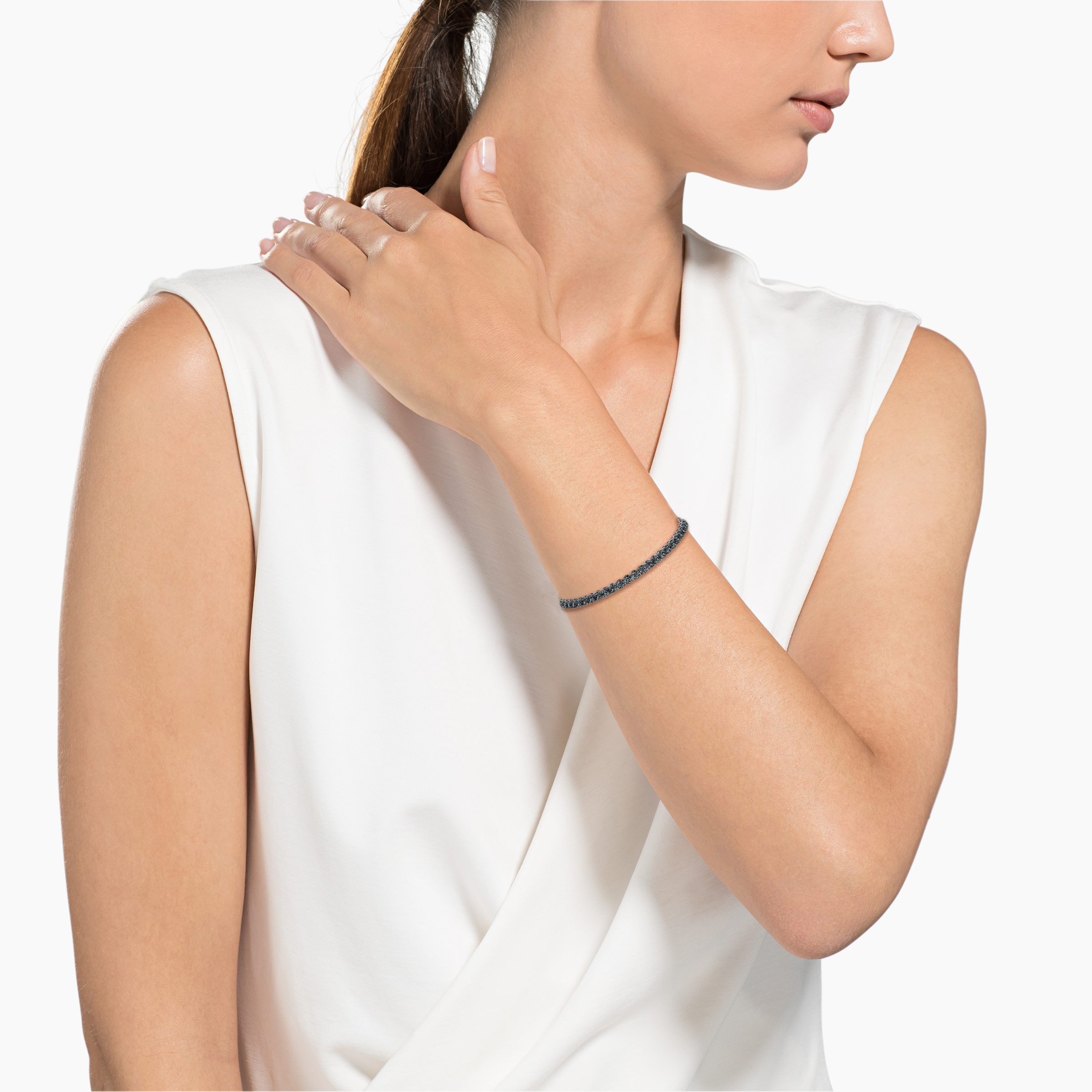 Zarif ışıltı ve çağdaş yorumla dolup taşan bu klasik kaplama rutenyum kaplama Tennis bilekliğin ışıltısını ihtiyacınız doğrultusunda azaltıp artırabilirsiniz. Tasarım, koyu gri renk tırnak yerleştirme yuvarlak kristallerin zarif bir dizisiyle tamamlandı. Günlük tarzınızın vazgeçilmezi olacak zarif ve minimalist bir tasarım.