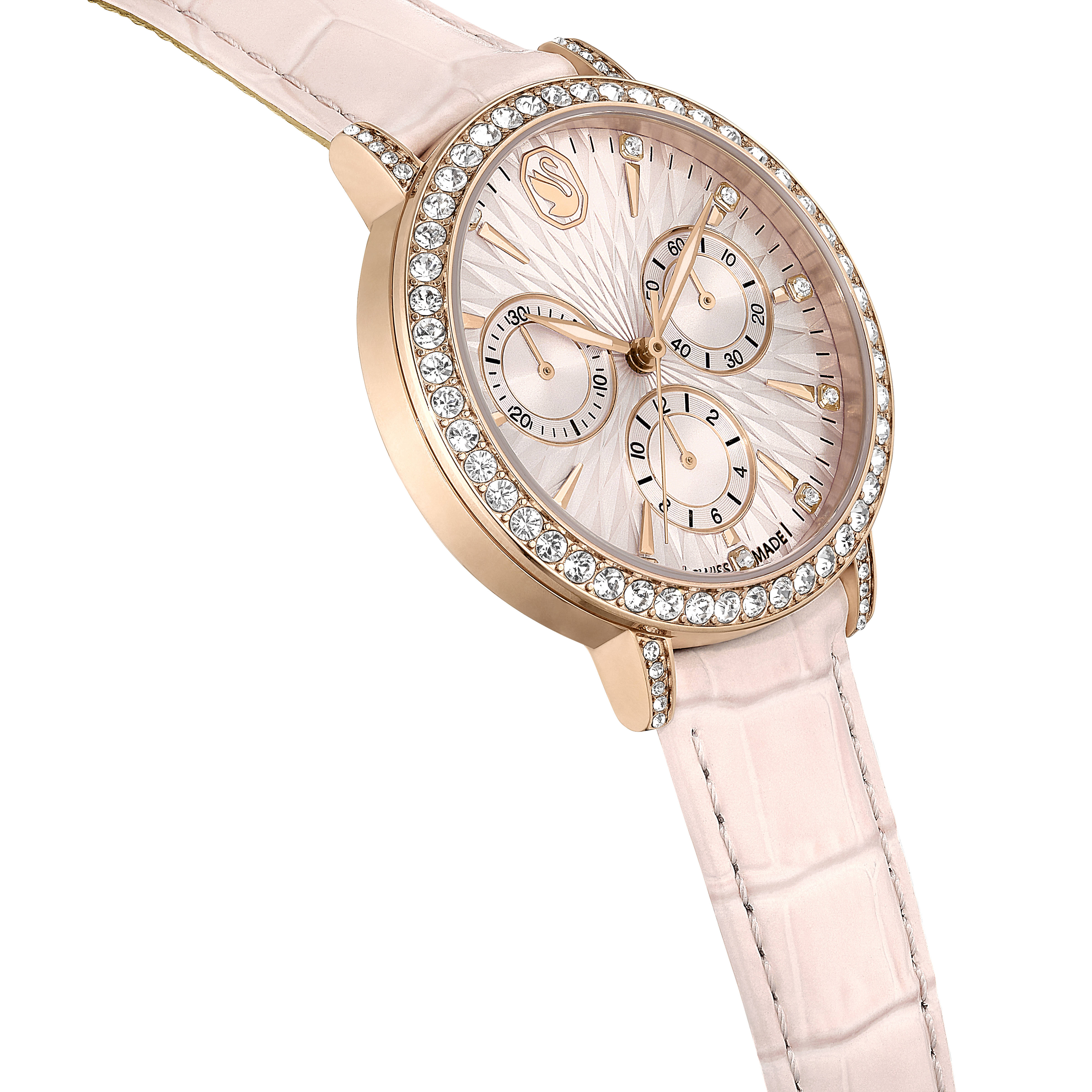 Matrix Tennis Chrono Saat, İsviçre Üretimi, Deri kayış, Pembe, Pembe altın rengi yüzey