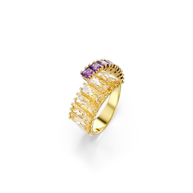 Bu görkemli Matrix yüzük, renklerin ve şekillerin çarpışmasını sunuyor. Üst üste binen halka bileklik, altın rengi kaplama olup kare ve baget kesimlerde karamel ve mor Swarovski Zirkonya’ya sahiptir. Uyumlu halka bileklikle güzel bir şekilde eşleşen capcanlı bir seçim.