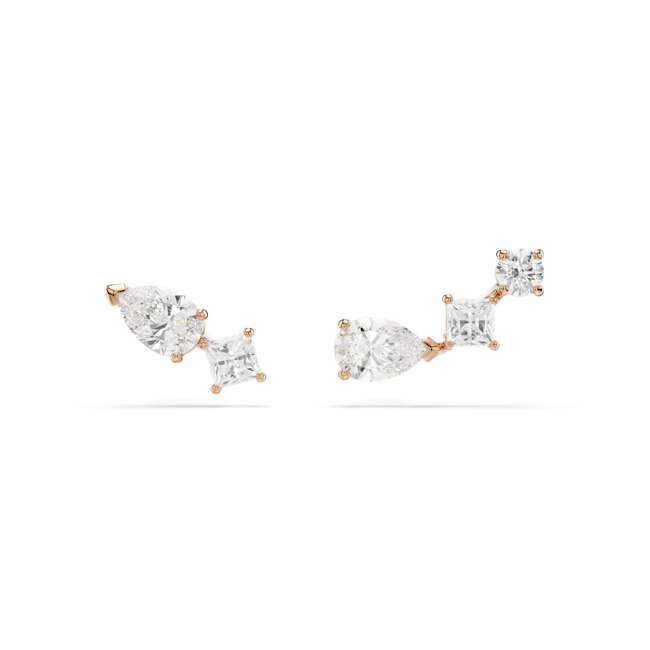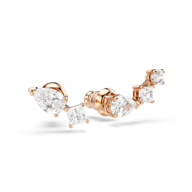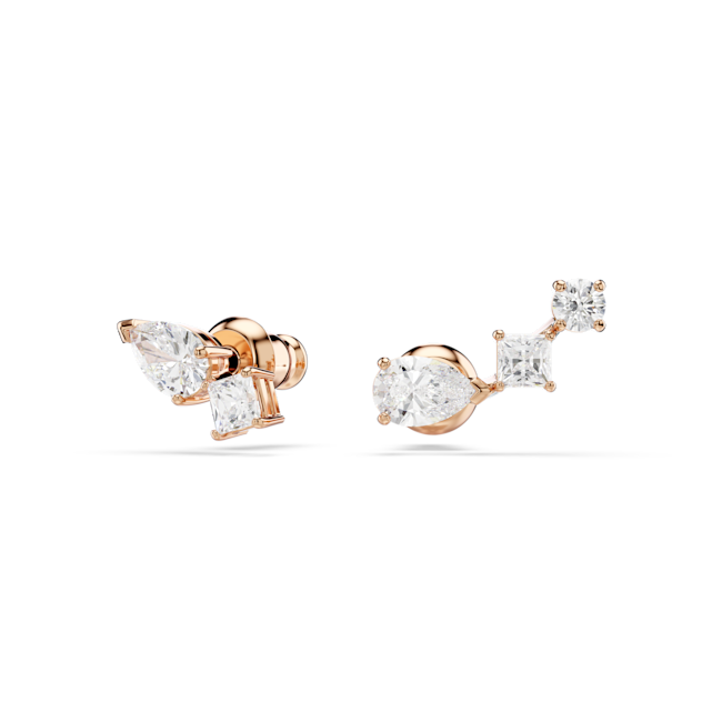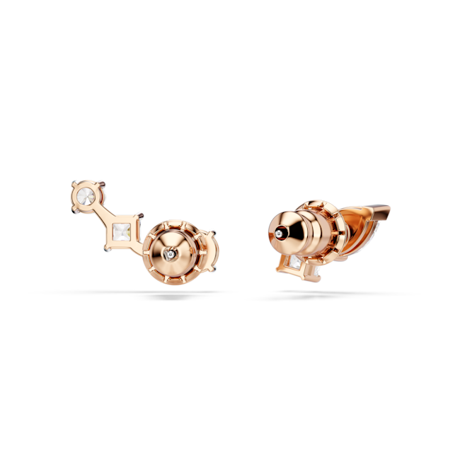 Mesmera düğme Küpeler, Asimetrik tasarım, Beyaz, Pembe altın rengi kaplama