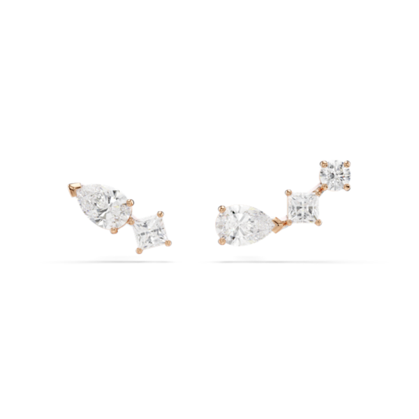 Bu asimetrik iğneli küpe çiftiyle gündüz veya akşam görünümünüzü bir üst seviyeye taşıyın. Etkileyici beyaz taş kümeleriyle süslenmiş olan küpe çifti, çabasız zarafetin en mükemmel hâli. Şık bir hava katmak için uyumlu parçalarla birlikte takın.
