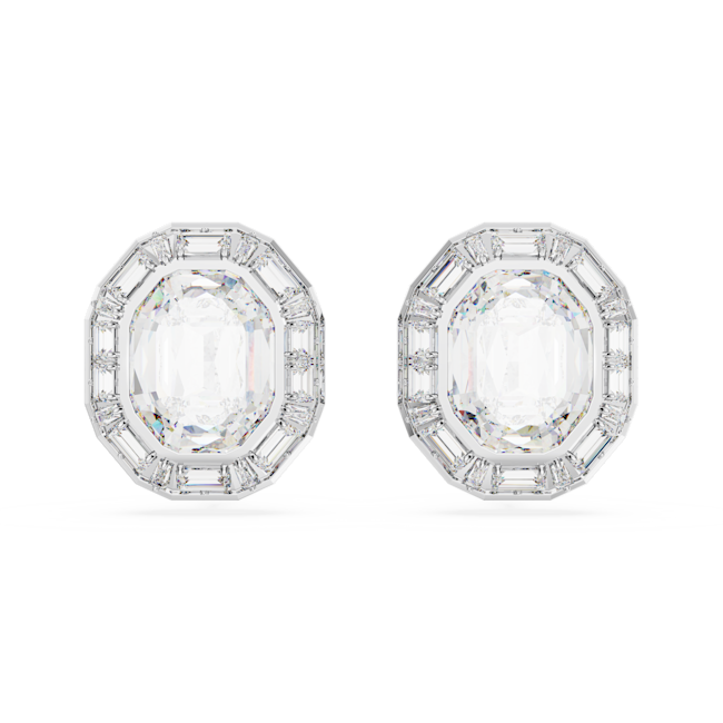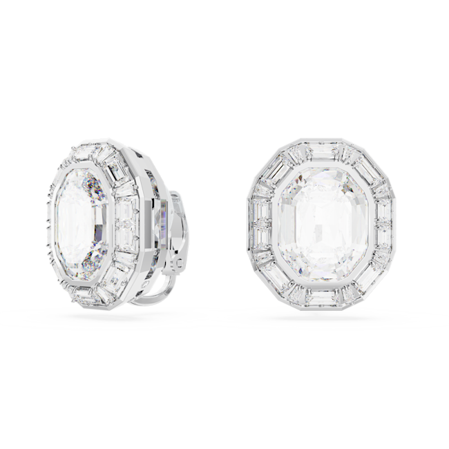 Mesmera Klipsli Küpeler, Sekizgen kesim, Beyaz, Rodyum kaplama