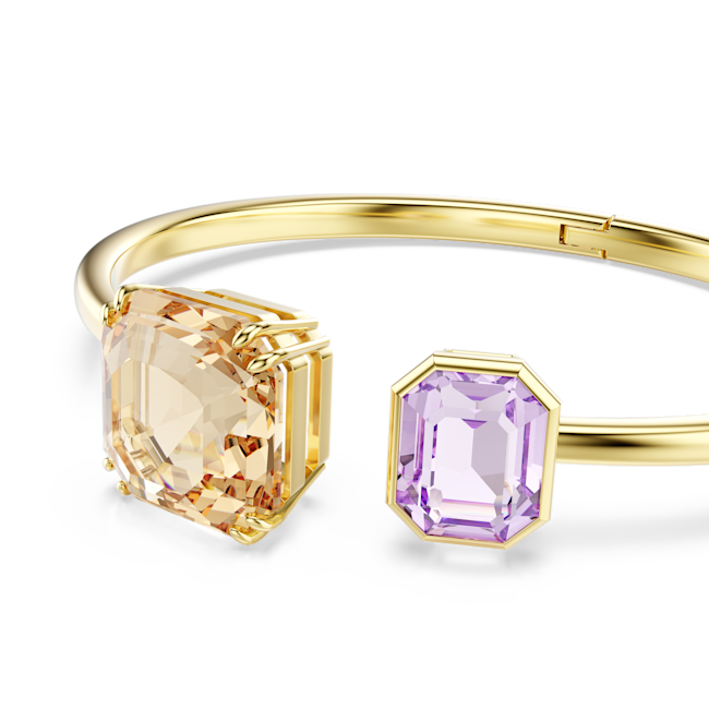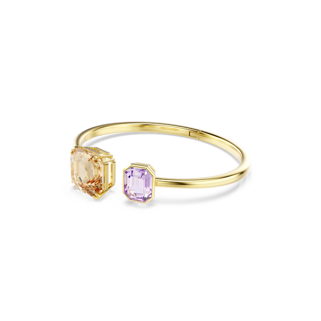 Bu oyuncu halka bileklik, her kıyafetinize anında neşe katar. Açık bant altın rengi kaplamadır ve çift tırnaklı yerleştirmeye sahip karamel renkli bir kristal ile bezel yerleştirmeye sahip daha küçük mor bir kristal içerir. Parıltıyı vurgulamak için diğer favori halka bilekliklerinizle birlikte kullanın veya uyumlu Millenia parçalarıyla eşleştirin.