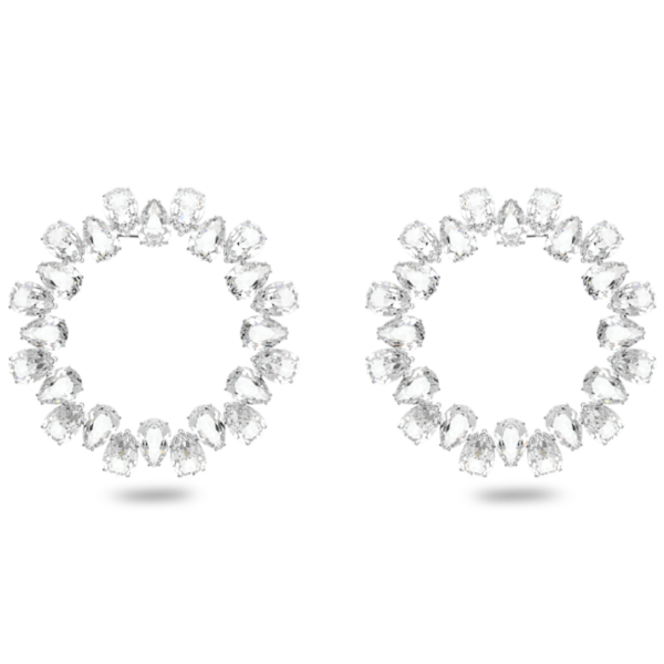 Millenia halka küpeler, Armut kesim, Büyük, Beyaz, Rodyum kaplama