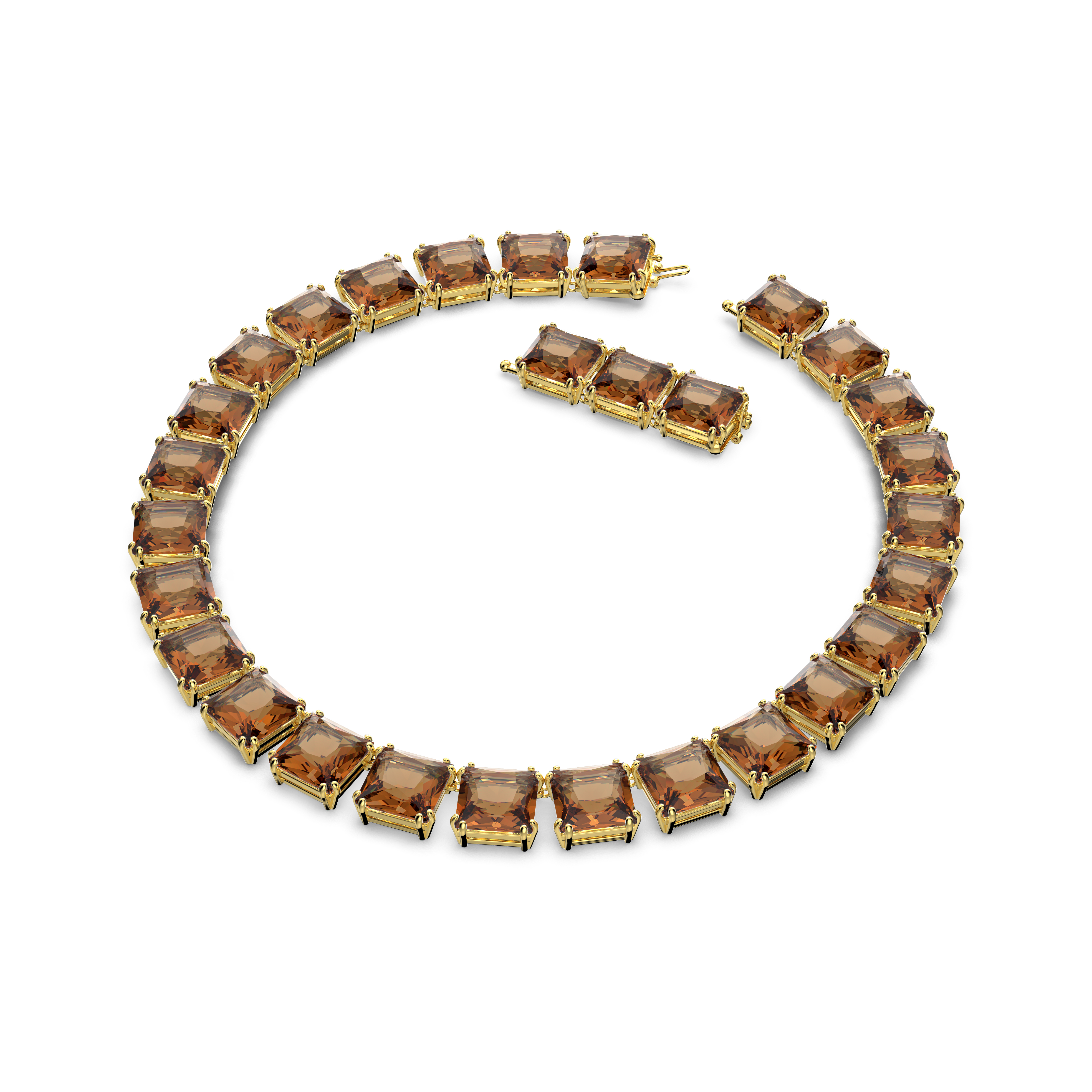 Millenia Kolye, Kare kesim, Kahverengi, Altın rengi kaplama