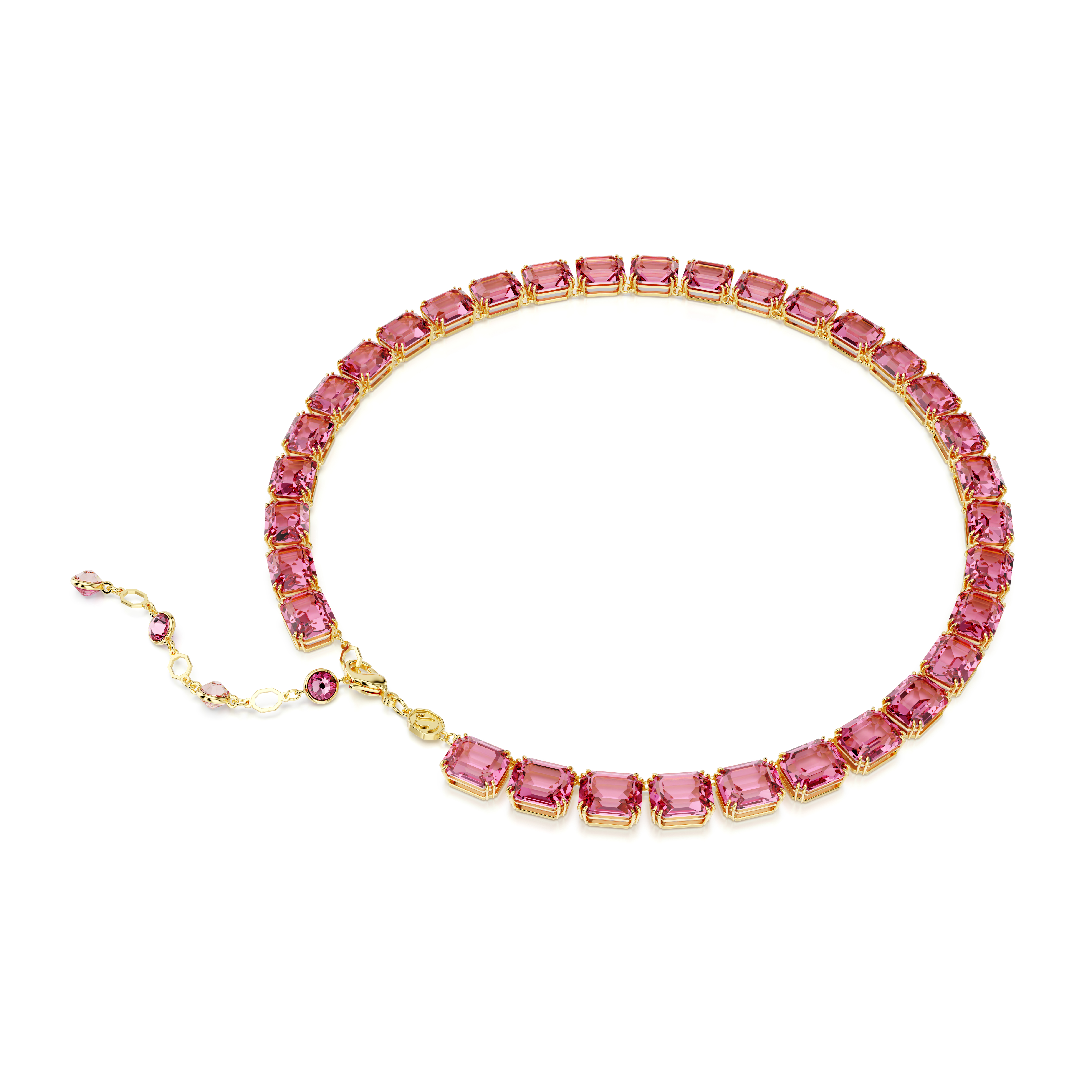 Millenia Tennis kolye, Sekizgen kesim, Pembe, Altın rengi kaplama