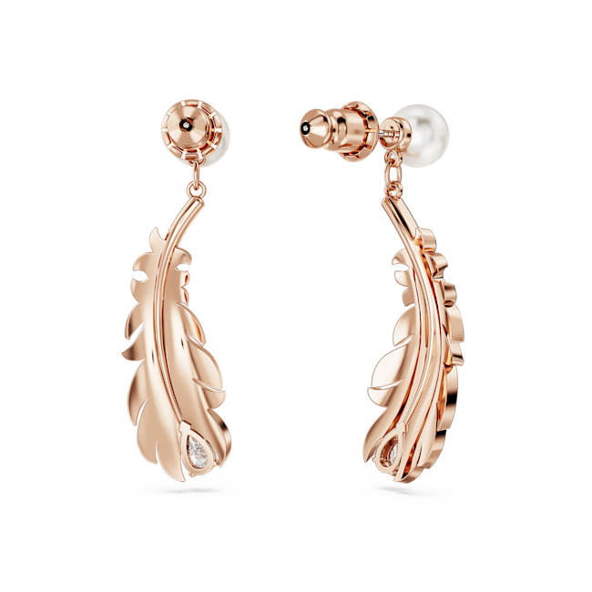 Tüylerden ilham alan bu iğneli küpelerin göz alıcı renkleri ve doğal formları, tarzınıza yumuşak bir zarafet katacak. Her bir pembe altın rengi kaplama parça, ışıltılı pembe pavé ve alttan sallanan Swarovski Zirkonya ile tamamlanmış göz alıcı tüy motifiyle birlikte bir adet Swarovski Kristal İnci'ye yer veriyor. Kendiniz veya sevdikleriniz için doğa esintileri taşıyan bir hediye.