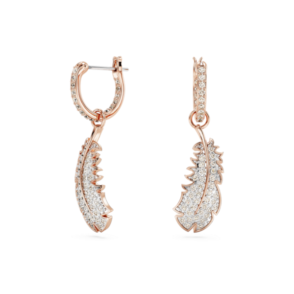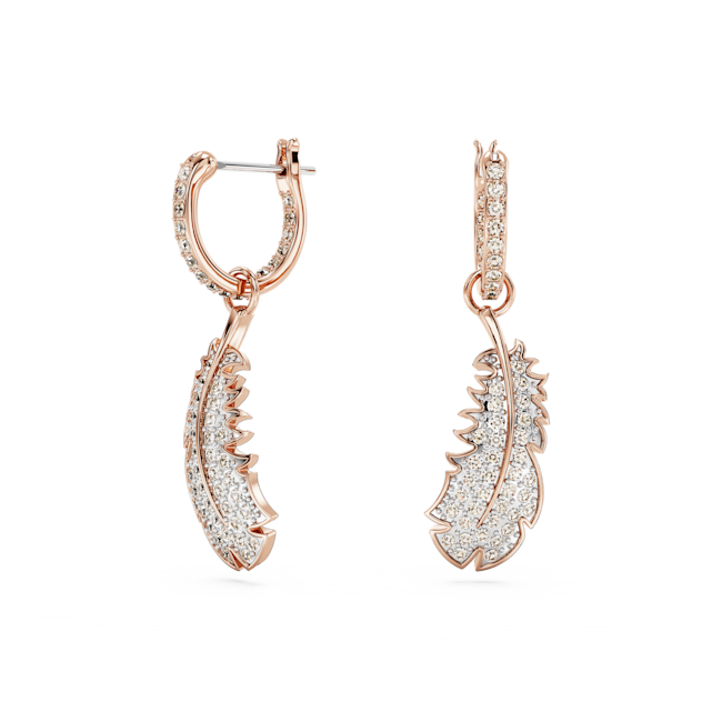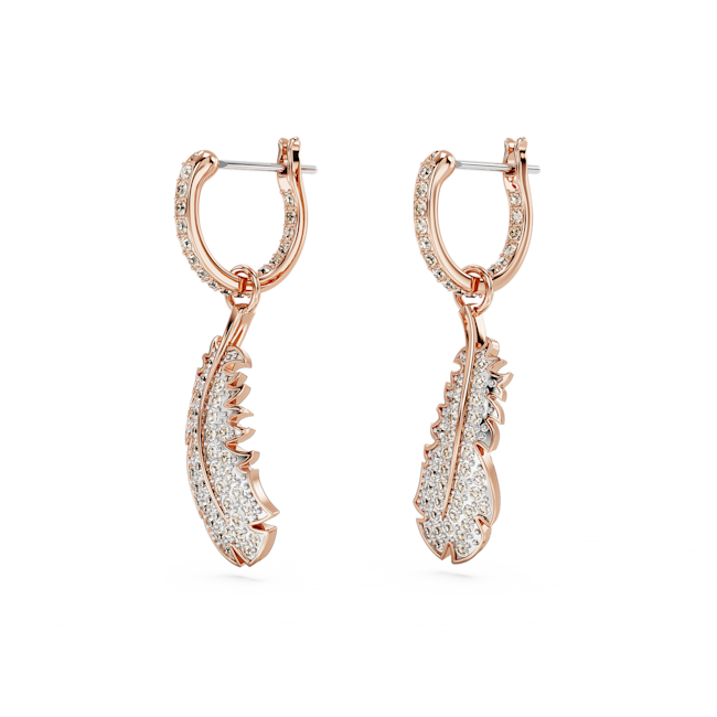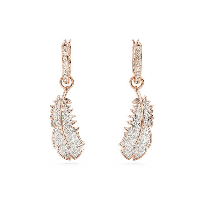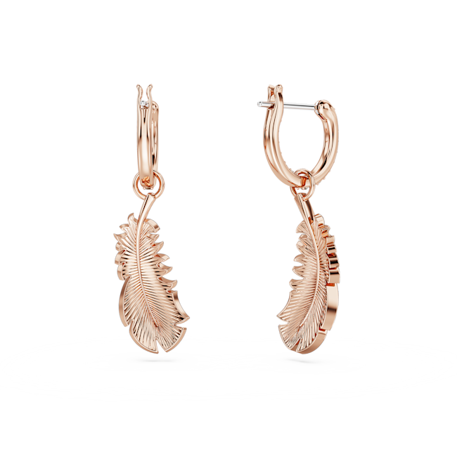 Idyllia serisinden bu göz alıcı ve doğadan ilham alan mücevherle, tüm görünümlerinize tüy kadar hafif bir dokunuş katın. Pembe altın rengi kaplama baş döndürücü tüy motifi, ışıltılı pembe pavé ve Swarovski Zirkonya ile tamamlanıyor ve zarif bir şekilde halkanın içinden sarkıyor. Bu hareketli küpeler, tüm tarzlara parıltılı ve huzurlu bir dokunuş katacak.