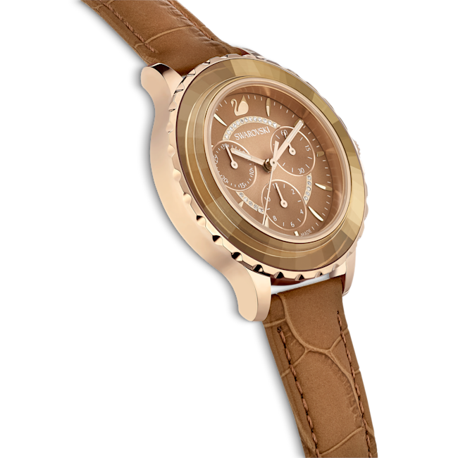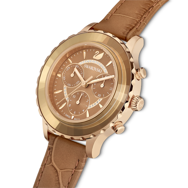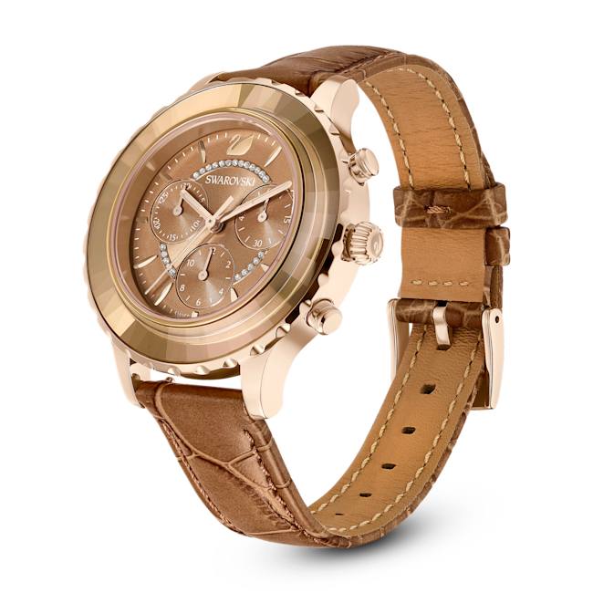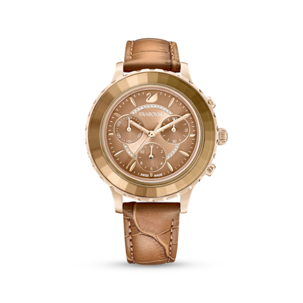 Octea lux chrono Saat, İsviçre Üretimi, Deri kayış, Kahverengi, Altın rengi yüzey
