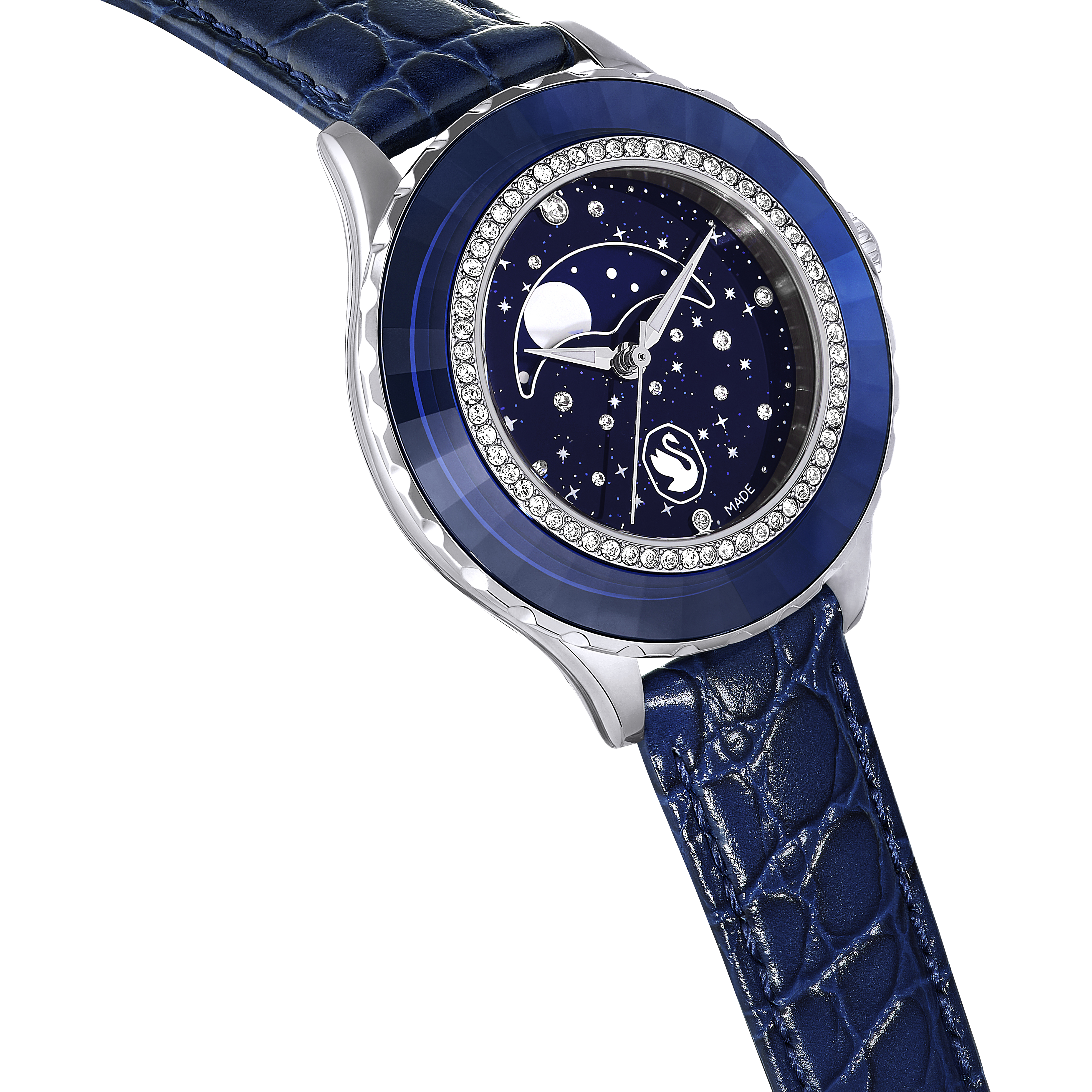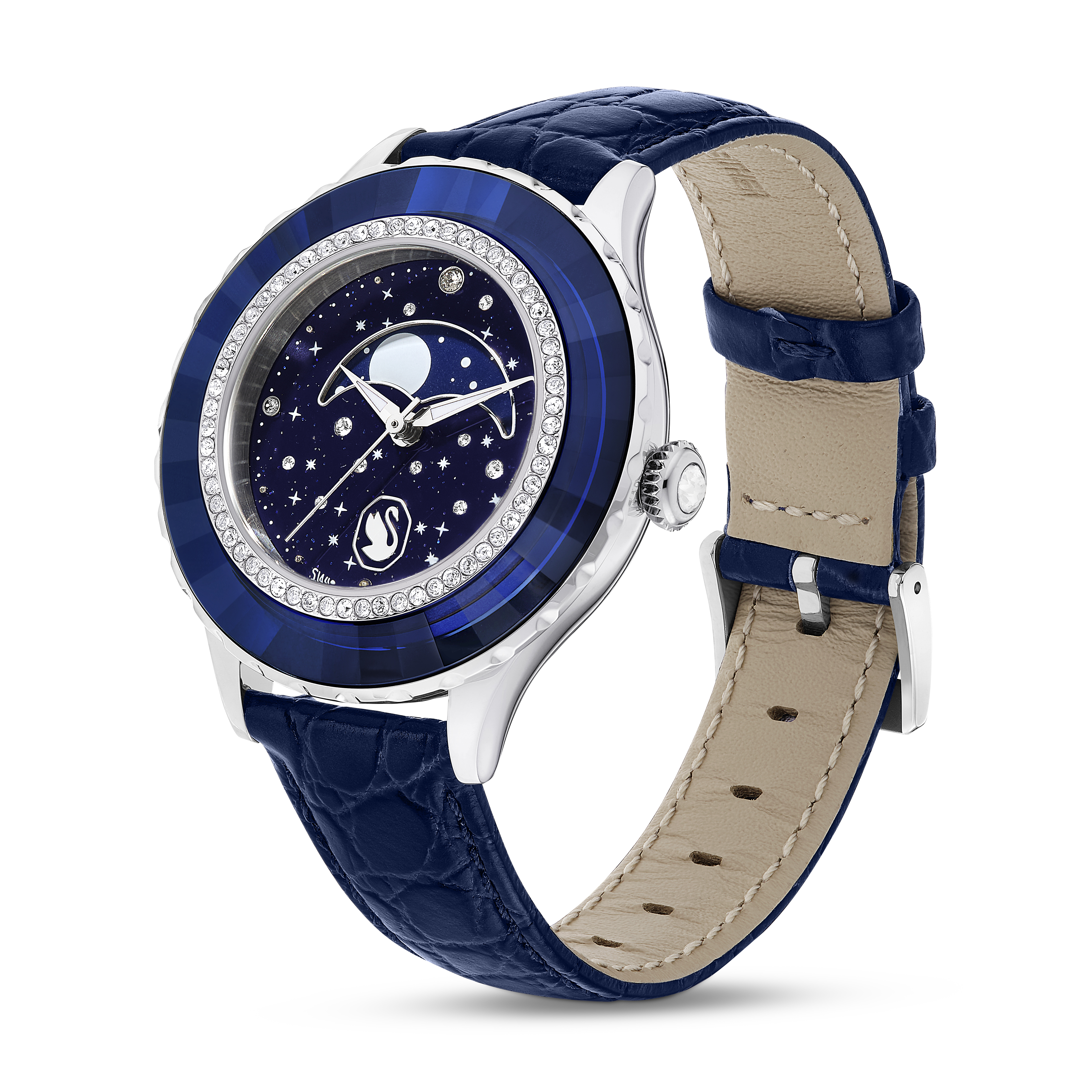 Octea Moon Saat, İsviçre Üretimi, Ay, Deri kayış, Mavi, Paslanmaz çelik