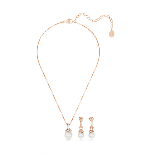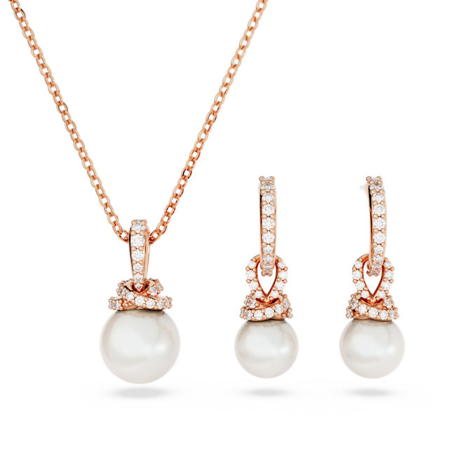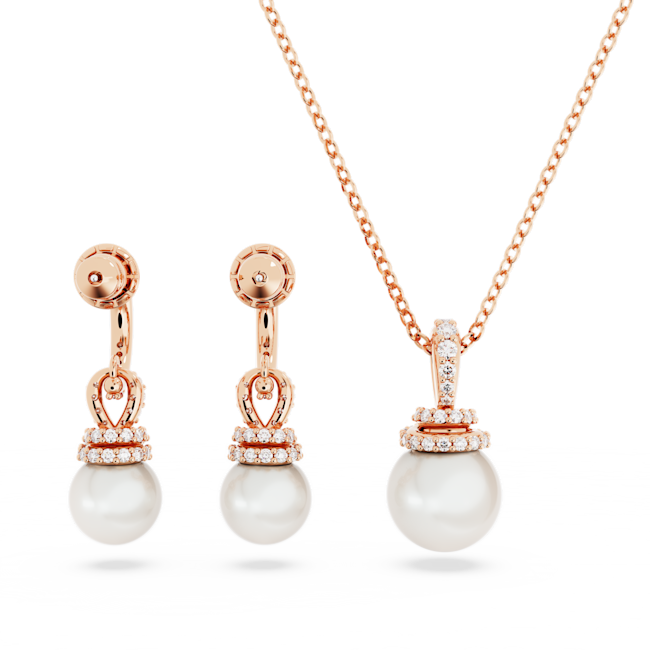 Originally Set, Kristal inci, Beyaz, Pembe altın rengi kaplama
