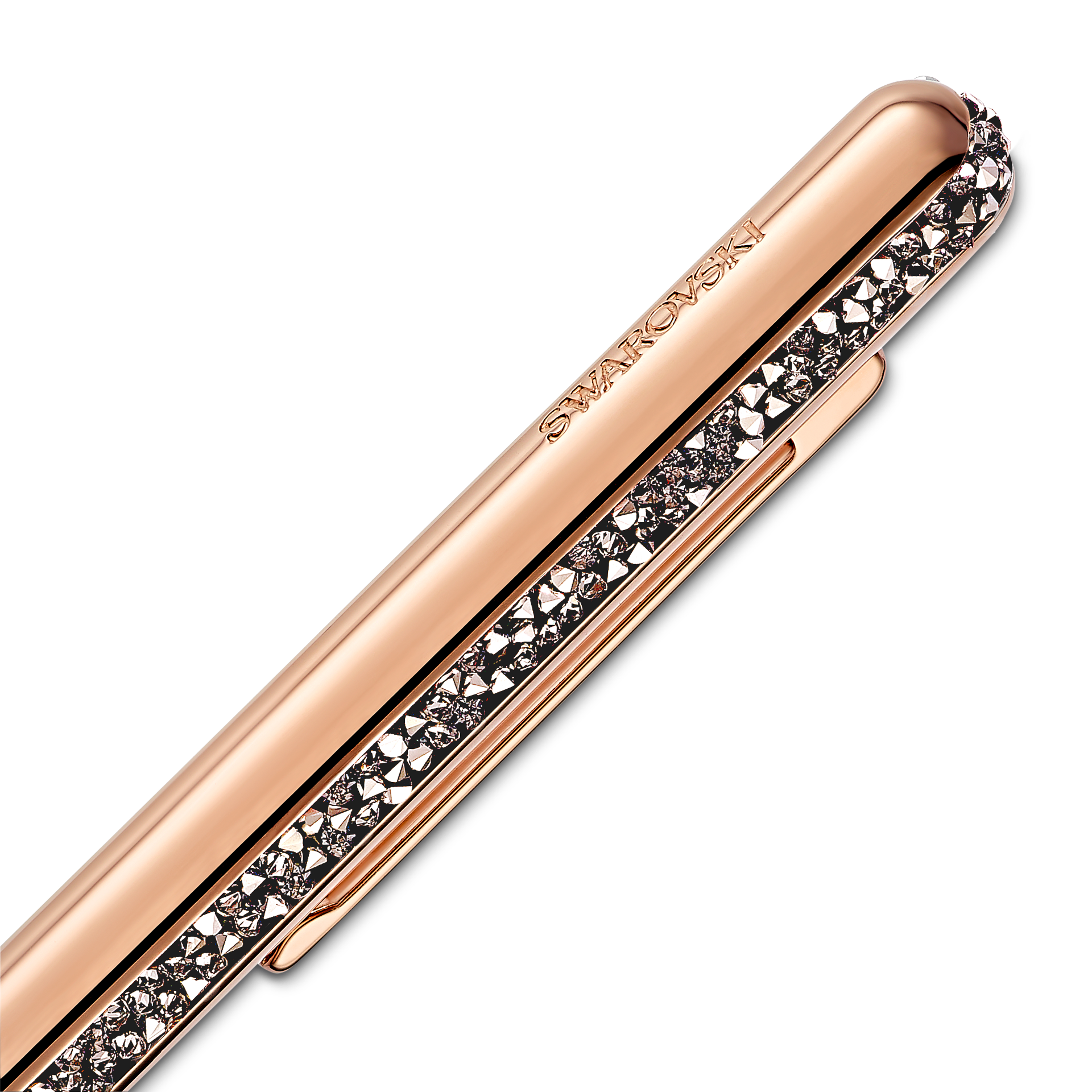 Bu pembe altın rengi kaplama Swarovski tükenmez kalem, zarif, yalın silueti, modern, minimalist bir estetikle bir araya getiriyor. Tasarımda, yüksek kaliteli Crystal Rocks tekniğimizin kullanıldığı, pembe altın tonda kristallerden oluşan, her iki yanda ve kalemin ucunda devam eden ışıltılı bir şerit göze çarpıyor. Zarif bir kesede verilen kalemde aynı zamanda pembe altın ton kaplama klips ve gövde yer alıyor. Gövde, Swarovski logosu ile tamamlanıyor. Yüksek kaliteli mürekkep kartuşu kolayca değiştirilebiliyor. Her türlü özel gün için ideal bir hediye seçeneği. Swarovski mağazalarında siyah ve mavi mürekkeplerin yeniden dolumu yapılabilir.
