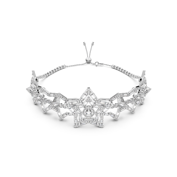 Bu tasma kolye ile rüya gibi bir etki bırakın. Yıldız hayranları için olmazsa olmaz bir parça olan bu küpeler, parlak rodyum kaplama yerleştirme üzerinde bulunan berrak kristaller ve taşlardan oluşan göz alıcı bir karışıma sahiptir ve dinamik bir görünüm sunmak için yenilikçi bir dans eden taş mekanizması sunar. Şık bir akşam görünümü için siyah bir elbiseyle birlikte kullanın. Kreatif Direktör Giovanna Engelbert tarafından Collection II için tasarlanmış olan bu tasma kolye, Stella ailesinin bir üyesi.