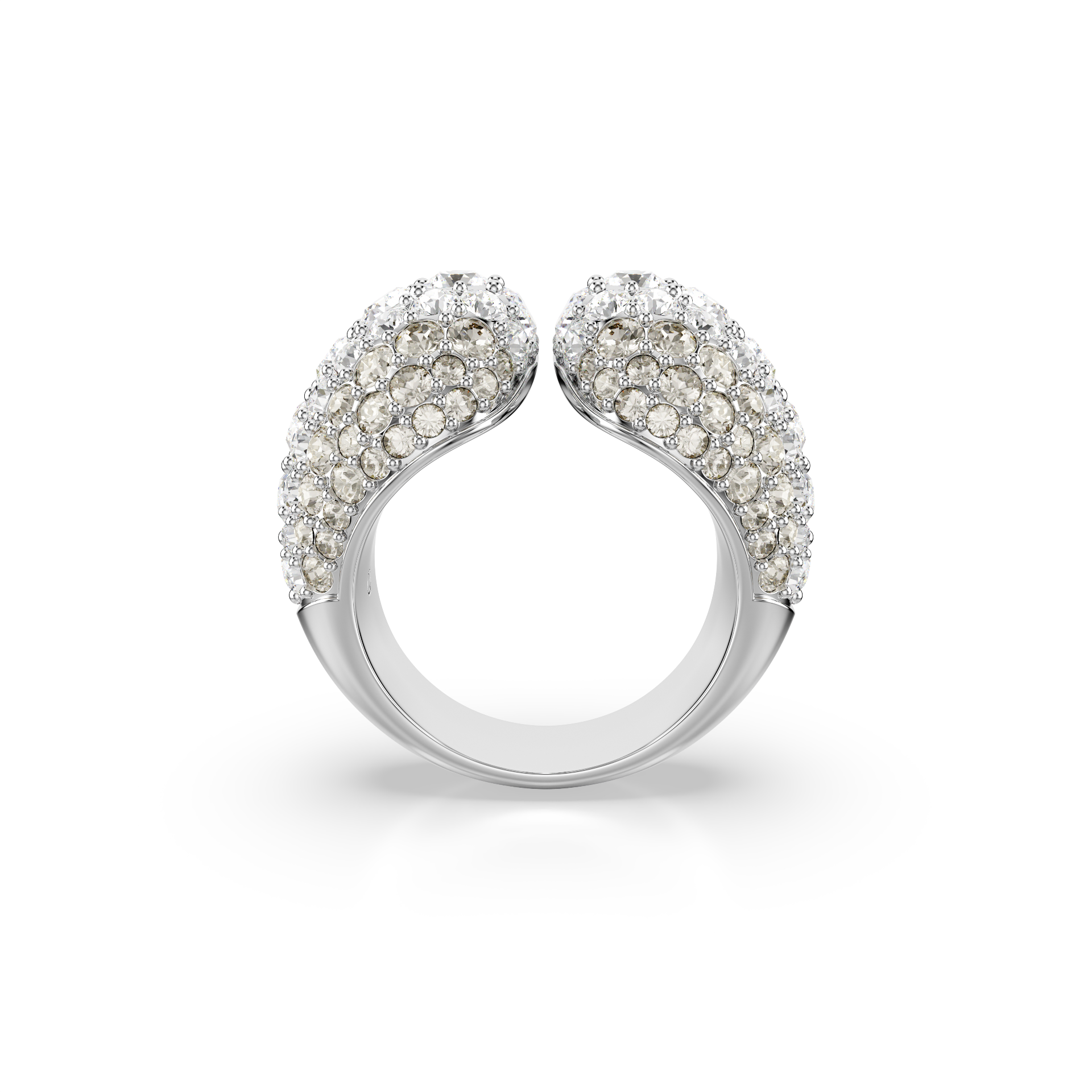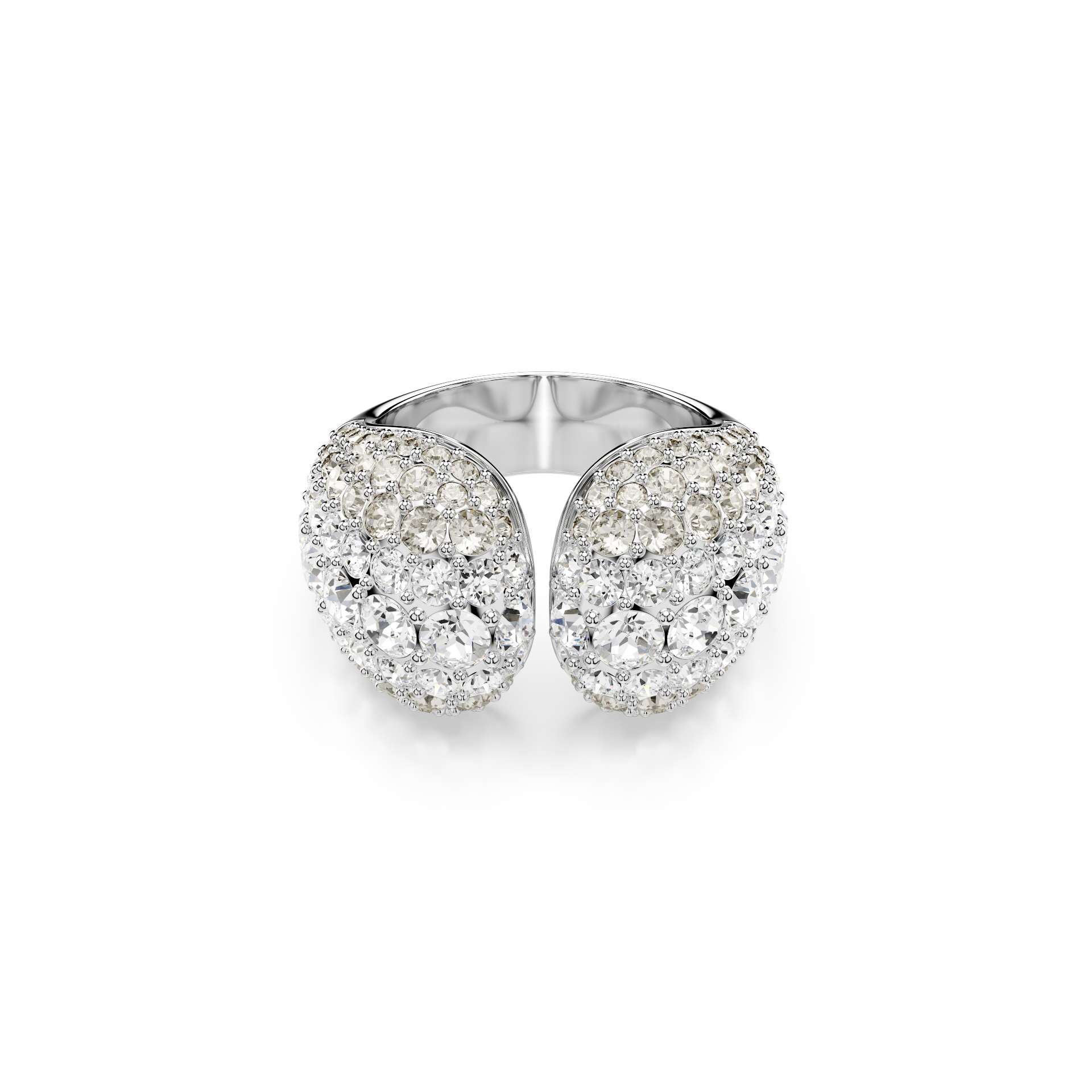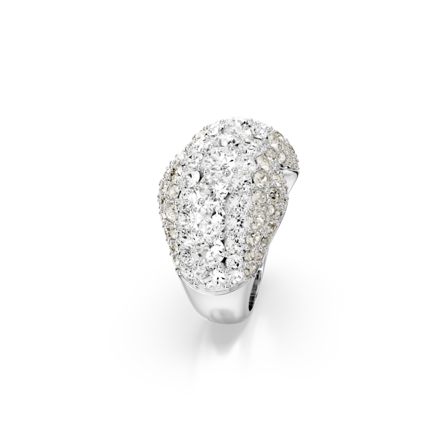 Bu göz kamaştırıcı Sublima kokteyl yüzüğüyle ihtişamın dozunu artırın. Benzersiz pavé tasarımı rodyum kaplama olmasının yanı sıra benzersiz bir hacim sunan kubbeli metal bir kaideyle tamamlanıyor. Farklı boyutlardaki kristallerin Meteora deseni bu büyüleyici efekte ışıltı katıyor. Göz kamaştırıcı bir görünüm için bu cesur parçayı uyumlu Sublima küpelerle birlikte kullanın.
