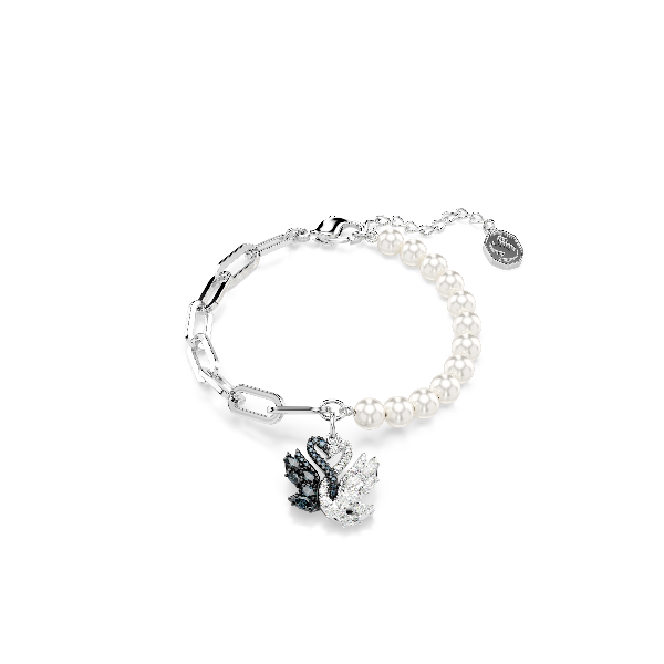 Swan Bileklik, Kristal inci, Kuğu, Siyah, Karışık metal yüzey