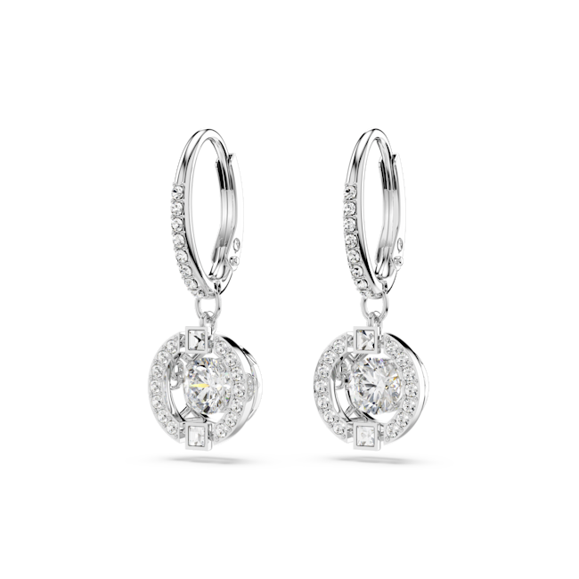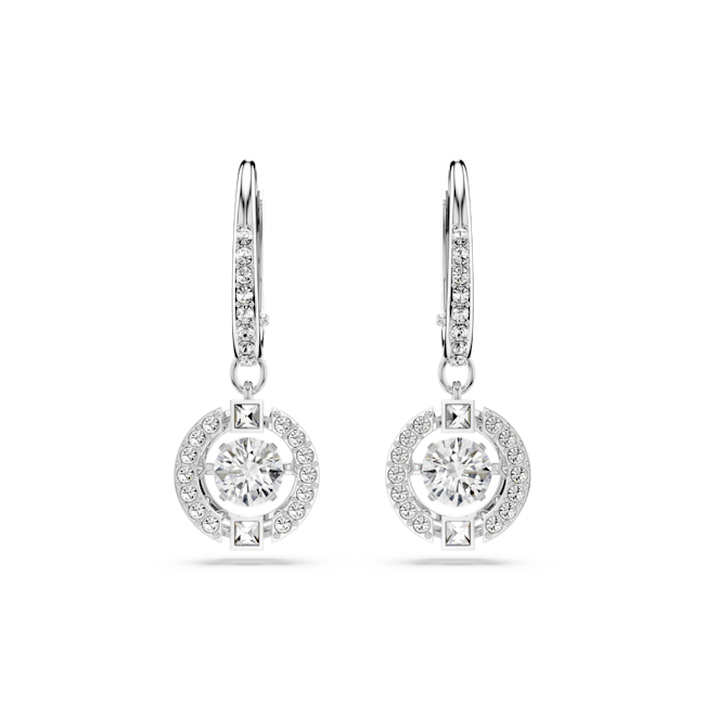 Swarovski Sparkling Dance damla küpeler, Yuvarlak kesim, Beyaz, Rodyum kaplama