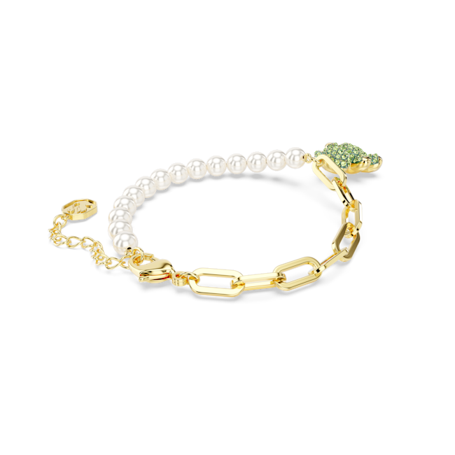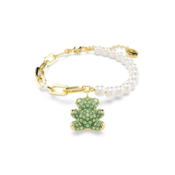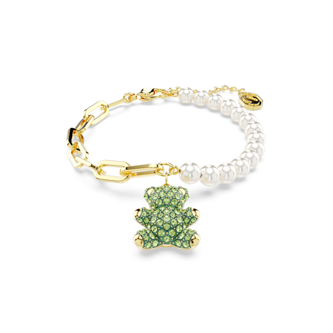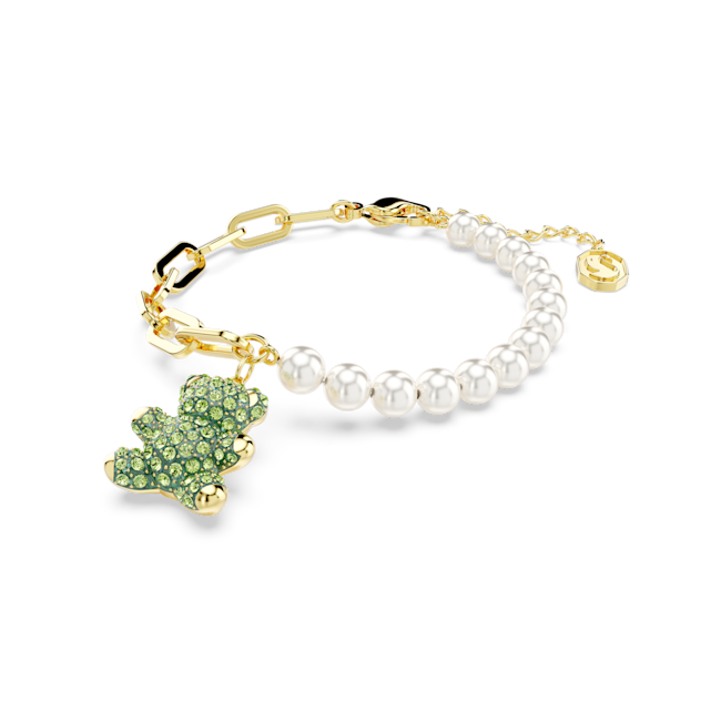Teddy Bileklik, Kristal inci, Ayıcık, Yeşil, Altın rengi kaplama