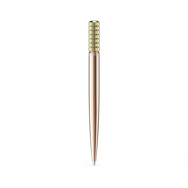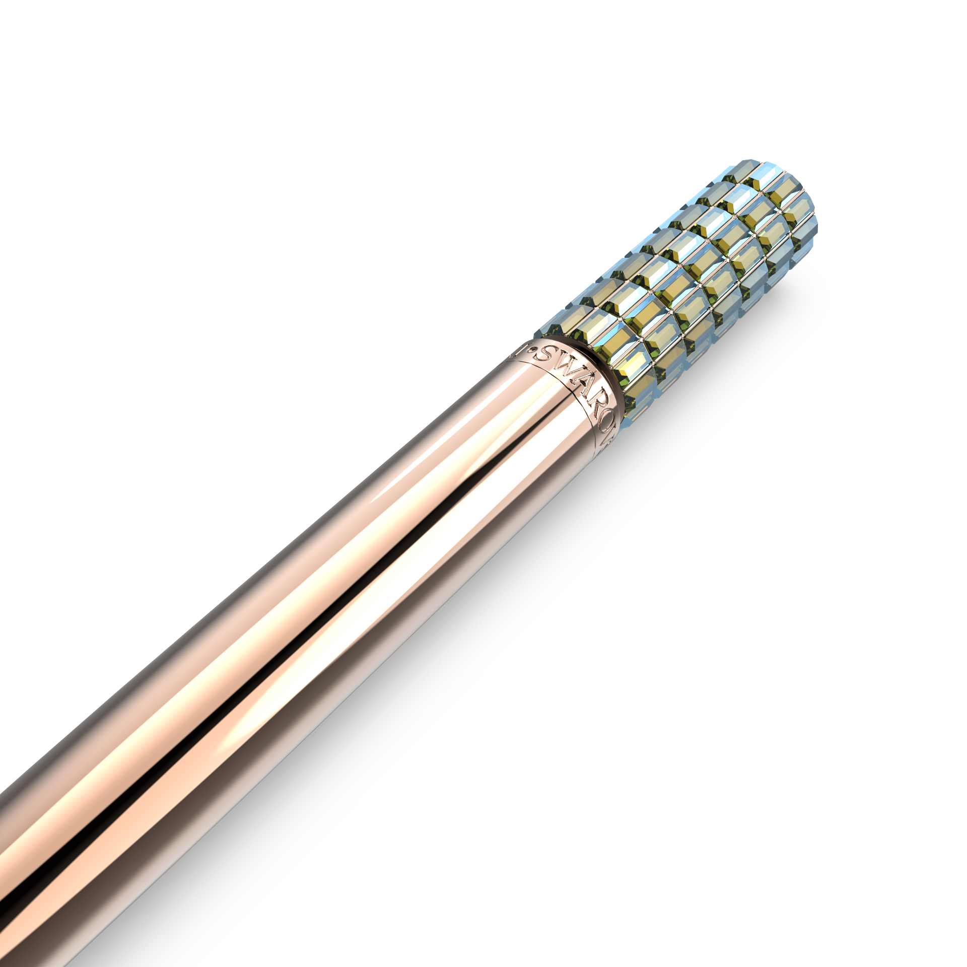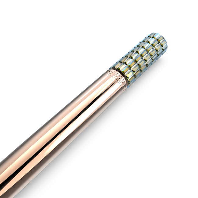 Lucent ailesinden ilham alan bu şık tükenmez kalemle yaratıcılığınızı harekete geçirin. Cesur ve eğlenceli tasarım, mücevher tekniklerinden ilham alan göz kamaştırıcı kristallerle ışığı yakalıyor. Pembe altın rengi kaplama ve Swarovski logosu ile tamamlanan parça, çevrilerek açılan dinamik bir mekanizmaya sahiptir. Sizin veya sevdiğiniz birisi için sofistike bir hediye. Swarovski mağazalarında siyah ve mavi mürekkeplerin yeniden dolumu yapılabilir.