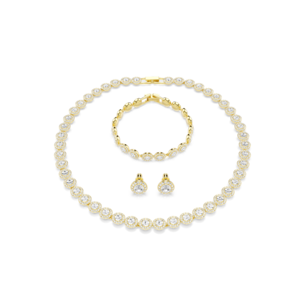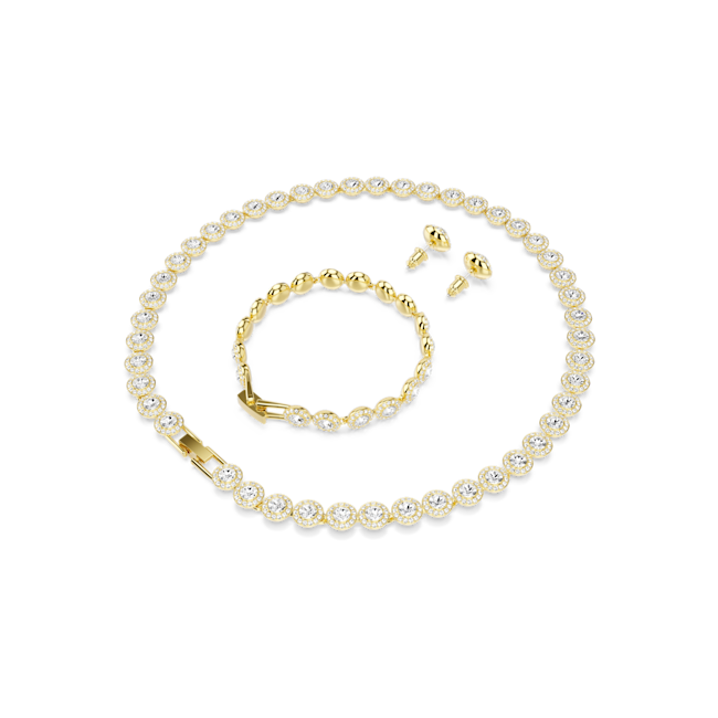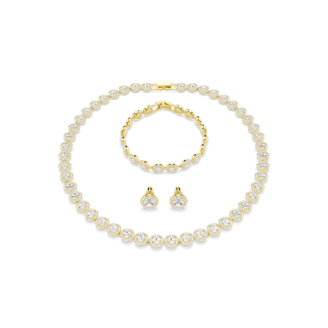 Kendinize veya özel birine bu güzel kolye, küpeler ve bileklik seti ile ışık dolu bir takı kombinasyonu ile şımartın. Kolayca takılabilen parçalar, altın rengi kaplama bir yerleştirmede berrak kristallerle tamamlanarak ideal bir hediye veya çarpıcı bir gelinlik aksesuarı olabilecek zamansız bir tasarım sunuyor.
